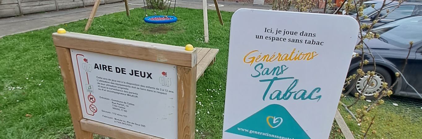 Plaatsing van de borden "Hier speel ik in een rookvrije zone" van GsT bij de speelplaatsen van de gemeente (in het park van Celles, bij de kerk van Escanaffles, bij de kerk van Molenbaix, op het Popuellesplein, bij de kerk van Pottes).