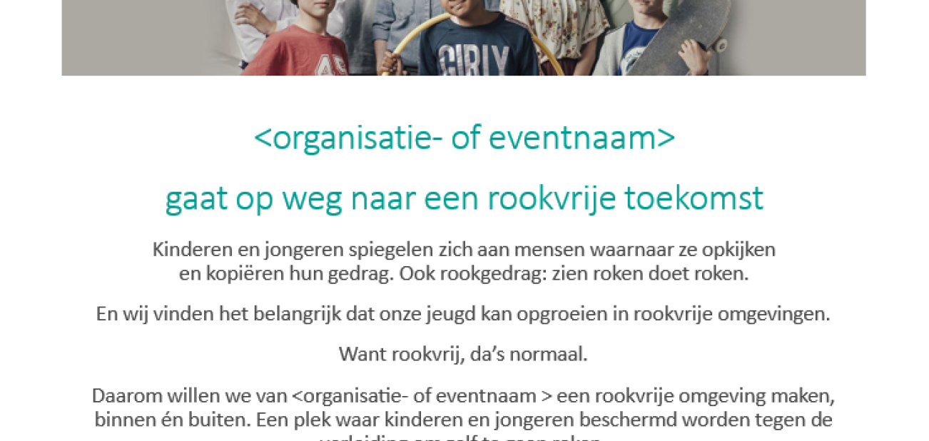 Naast rookvrije omgevingen, blijven ook sensibilisering rond roken en vapen en rookstopbegeleiding belangrijk . Ze verhogen de naleving én brengen het thema ook op een positieve manier onder de aandacht.
