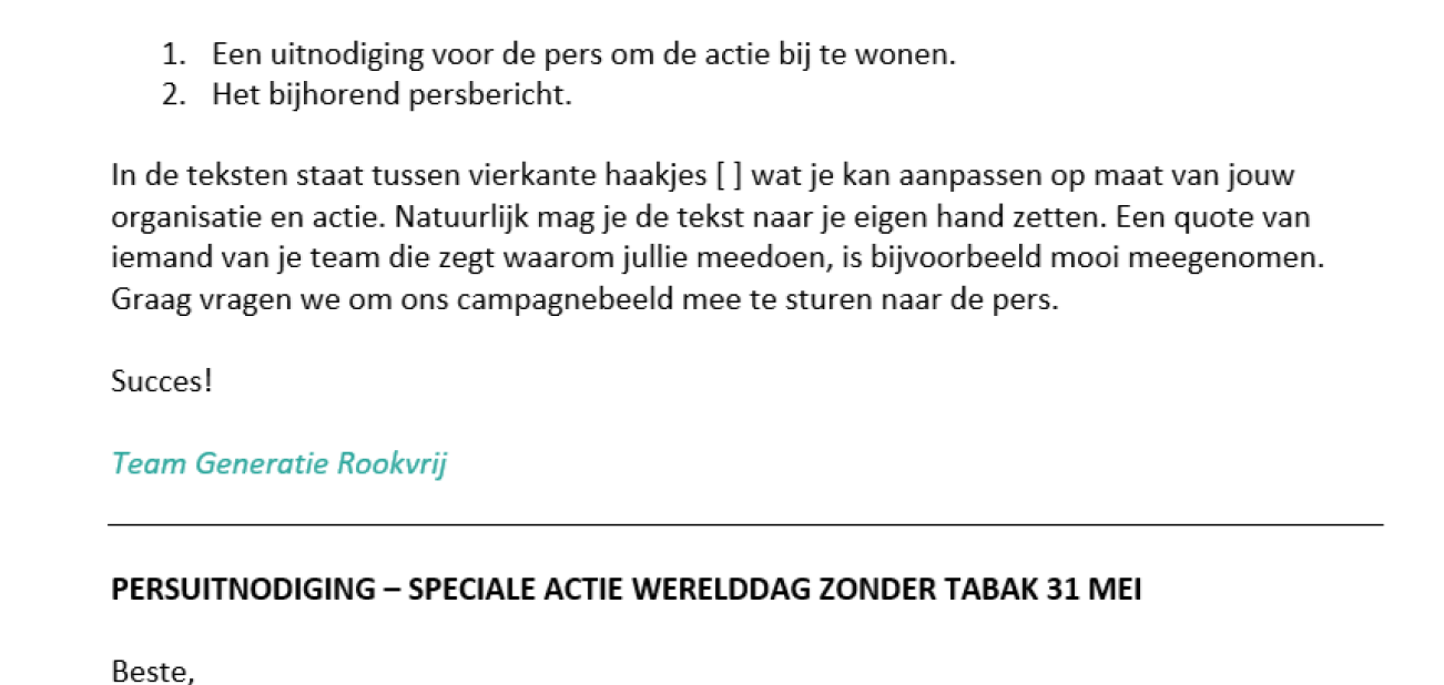 Kinderen hebben het recht om rookvrij op te groeien. Daarom organiseert Generatie Rookvrij elk jaar een actie rond de Werelddag zonder Tabak op 31 mei.