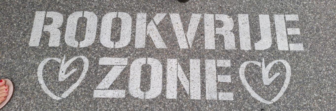 Aan de drie toegangspunten tot deze zone plaatsten we duidelijke borden met peukenpalen, en op het wegdek werd ‘rookvrije zone’ aangebracht.