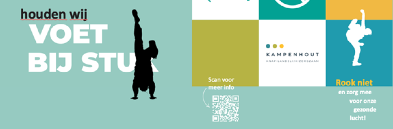 De gemeentelijke jeugd- en communicatiedienst en de Kindergemeenteraad werkten met Nick een ferme campagne uit. Met de slogan ‘Hier houden we voet bij stuk’ maakten de Kampenhoutse kinderen duidelijk dat zij als rookvrije generatie willen opgroeien. Er werd een fotoshoot gehouden voor leuke affiches, een krijtstencil en socialemediabeelden. De Kampenhoutenaren konden er niet naast kijken dat hun kinderen volop voor rookvrij gaan!